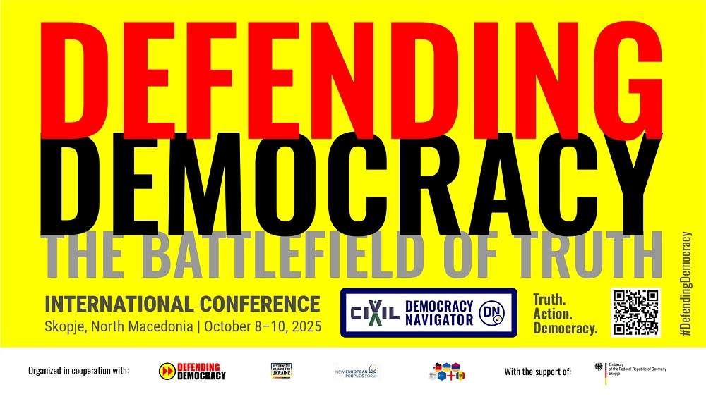 Konferenca ndërkombëtare “Mbrojtja e Demokracisë: Fushëbeteja e së Vërtetës”, që do të mbahet në Shkup nga 8 deri në 10 tetor 2025, është organizuar nga CIVIL – Qendra për Liri. Është bashkëorganizuar në partneritet me anëtarët bashkëthemelues Westminster Alliance for Ukraine, Defending Democracy Global Initiative, New European People’s Forum ( internacionale) dhe Media Dialogue, ( Gjermani) – dhe në bashkëpunim me organizatat partnere të Aleancës Westminster për Ukrainën, përfshirë Centro Studi Internazionali (Itali) dhe Shoqatën Jean Monnet (Francë).