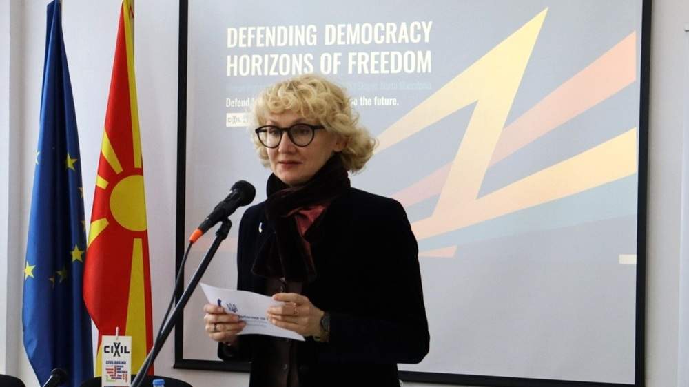 Në konferencën ndërkombëtare “Mbrojtja e Demokracisë: Horizontet e Lirisë”, Ambasadorja e Ukrainës në Maqedoninë e Veriut, Larysa Dir, theksoi rëndësinë urgjente të mbrojtjes së vlerave demokratike.