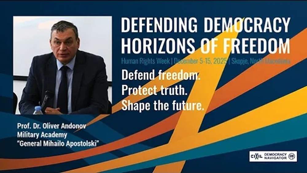 Në konferencën ndërkombëtare “Mbrojtja e demokracisë: Horizontet e Lirisë”, Profesor Oliver Andonov iu drejtua panelit “Lufta në Ukrainë, Lufta Hibride në Evropë dhe Lufta Globale Demokratike” me një paralajmërim të qartë: Agresioni i Rusisë kundër Ukrainës është një luftë brutale hibride me pasoja të drejtpërdrejta për Evropën dhe botën demokratike. Ndërhyrja e tij theksoi se si forca ushtarake, dezinformimi dhe manipulimi politik përdoren për të minuar qëndrueshmërinë demokratike, për të dobësuar NATO-n dhe BE-në dhe për të destabilizuar rajone të cenueshme si Ballkani.
