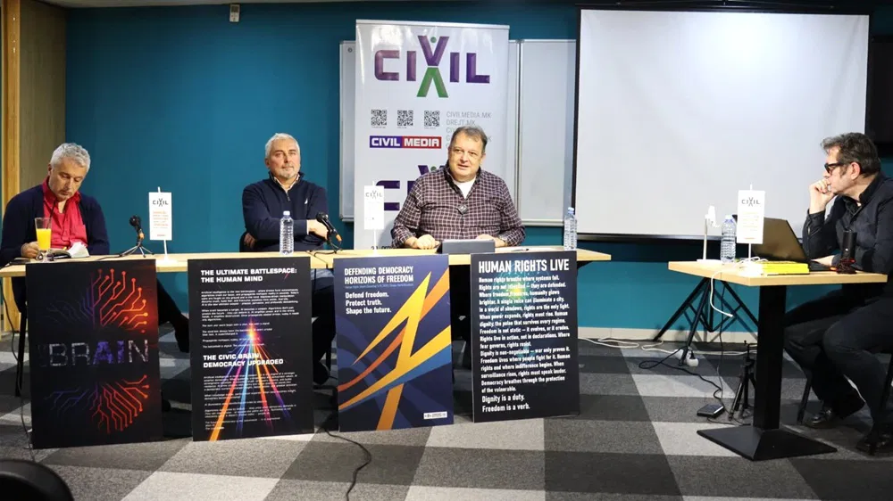 Në konferencën ndërkombëtare “Mbrojtja e Demokracisë: Horizontet e Lirisë”, Goran Vasilevski, Vanço Ordanoski dhe Nikola Gelevski diskutuan se si IA po transformon konfliktin bashkëkohor dhe si regjimet autoritare e përdorin atë për shtrëngim, dominim informacioni dhe operacione hibride. Diskutimi në tryezë të rrumbullakët “IA në Vijat e Frontit: Lufta, Autoritarizmi dhe të Ardhmet Demokratike” u moderua nga Xhabir Deralla.