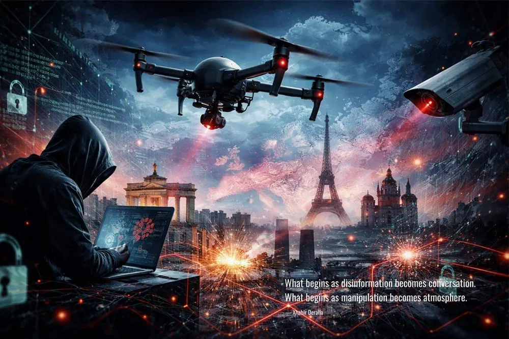 Deri më tani, nuk është konfirmuar asnjë operacion hibrid në shkallë të gjerë me karakter fizik të qartë, të përcaktuar dhe publikisht të atribuueshëm. Por periferitë janë aktive. Janë dokumentuar përpjekje për rekrutim përmes Telegramit për detyra të nivelit të ulët, si zbulimi ose sabotazhi. Operacionet kibernetike janë në vazhdim. Hyrjet me dronë dhe shkeljet e hapësirës ajrore janë bërë rutinë në disa vende evropiane, përfshirë rreth infrastrukturës kritike dhe aeroporteve. Sulmi i fundit kibernetik prorusi ndaj sistemeve postare franceze është një shembull se si ndërprerja zhvendoset drejt formave me dukshmëri të ulët dhe mohueshmëri të besueshme.