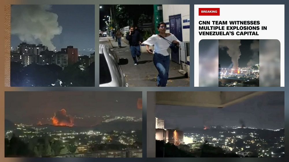 Në orët e hershme të 3 janarit u raportuan disa shpërthime në Karakas, kryeqytetin e Venezuelës. Banorët raportuan se dëgjuan të paktën shtatë shpërthime dhe panë avionë që fluturonin në lartësi të ulët mbi disa pjesë të qytetit. U pa tym pranë objekteve strategjike, përfshirë bazën ajrore La Carlota, dhe disa lagje përjetuan ndërprerje të përkohshme të energjisë elektrike.